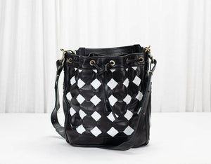 Danae bag - Black and white handwoven leather