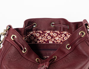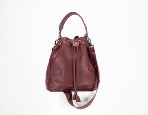 A medium-sized drawstring bag proves to be the perfect companion for your on-the-go lifestyle. It has a soft silhouette with a structured base and it features two types of handles. A short handle and a long adjustable strap, both detachable. The two exterior side zippered pockets are very handy for your phone, glasses, or anything else you want to have quick access to.
