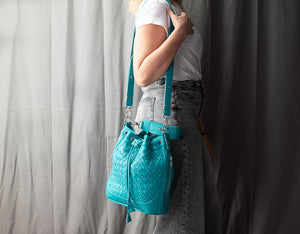 Danae bag - Turquoise handwoven leather