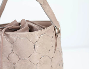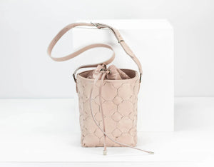 A square twist on the classic bucket bag—structured style meets drawstring charm