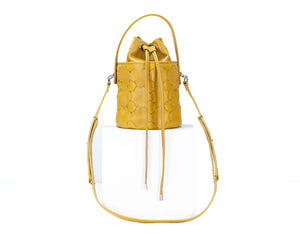Helon mini bucket bag - Handwoven yellow leather