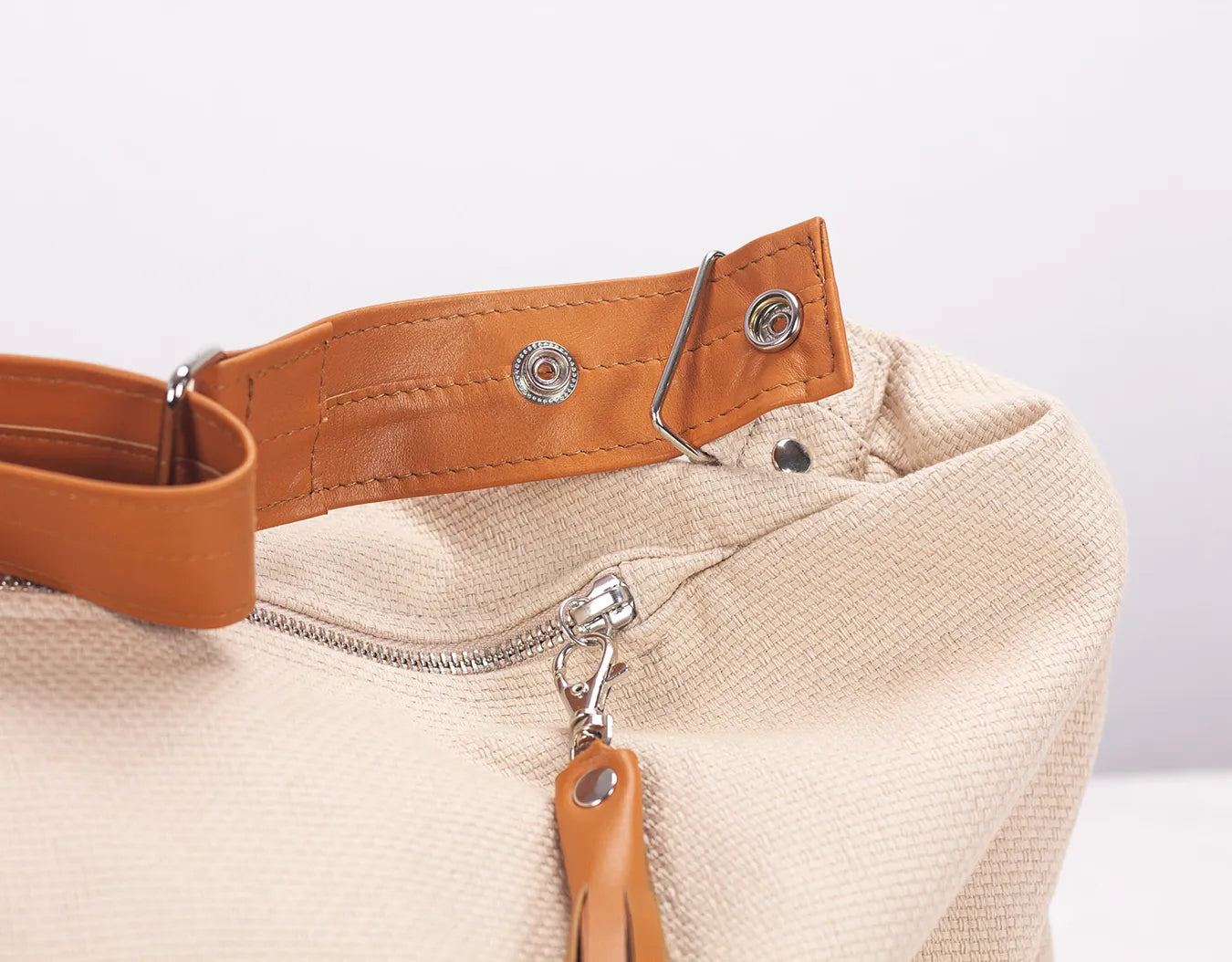 It features a removable leather strap and zipper pulls—so you can clean the body without worry and even swap the leather parts for different colors whenever you want a fresh look