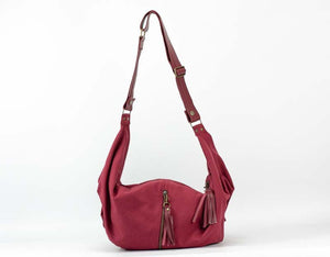 Η crossbody hobo τσάντα Kallia είναι φτιαγμένη από βαμβακερό καμβά σε βαθύ κόκκινο με λεπτομέρειες από αρνί δερμα. Διαθέτει αποσπώμενα δερμάτινα μέρη και φερμουάρ, ώστε να καθαρίζεται και να προσαρμόζεται εύκολα στο στυλ σου. Ευρύχωρη και κομψή, ιδανική για καθημερινή χρήση ή σύντομες αποδράσεις