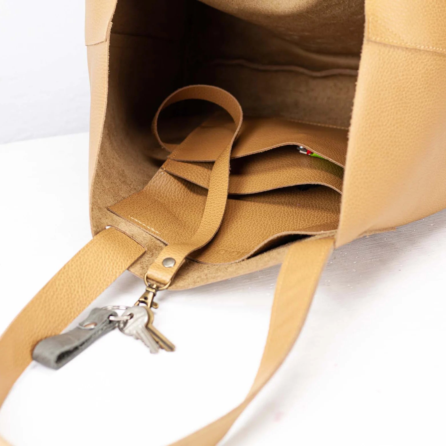 Meet your new everyday bag. This tote is made with a cool raw-edge finish that gives it a laid-back, rustic vibe. It’s roomy enough to hold your laptop, books, and all your daily stuff—plus it has two inside pockets and a key clip to keep things organized.