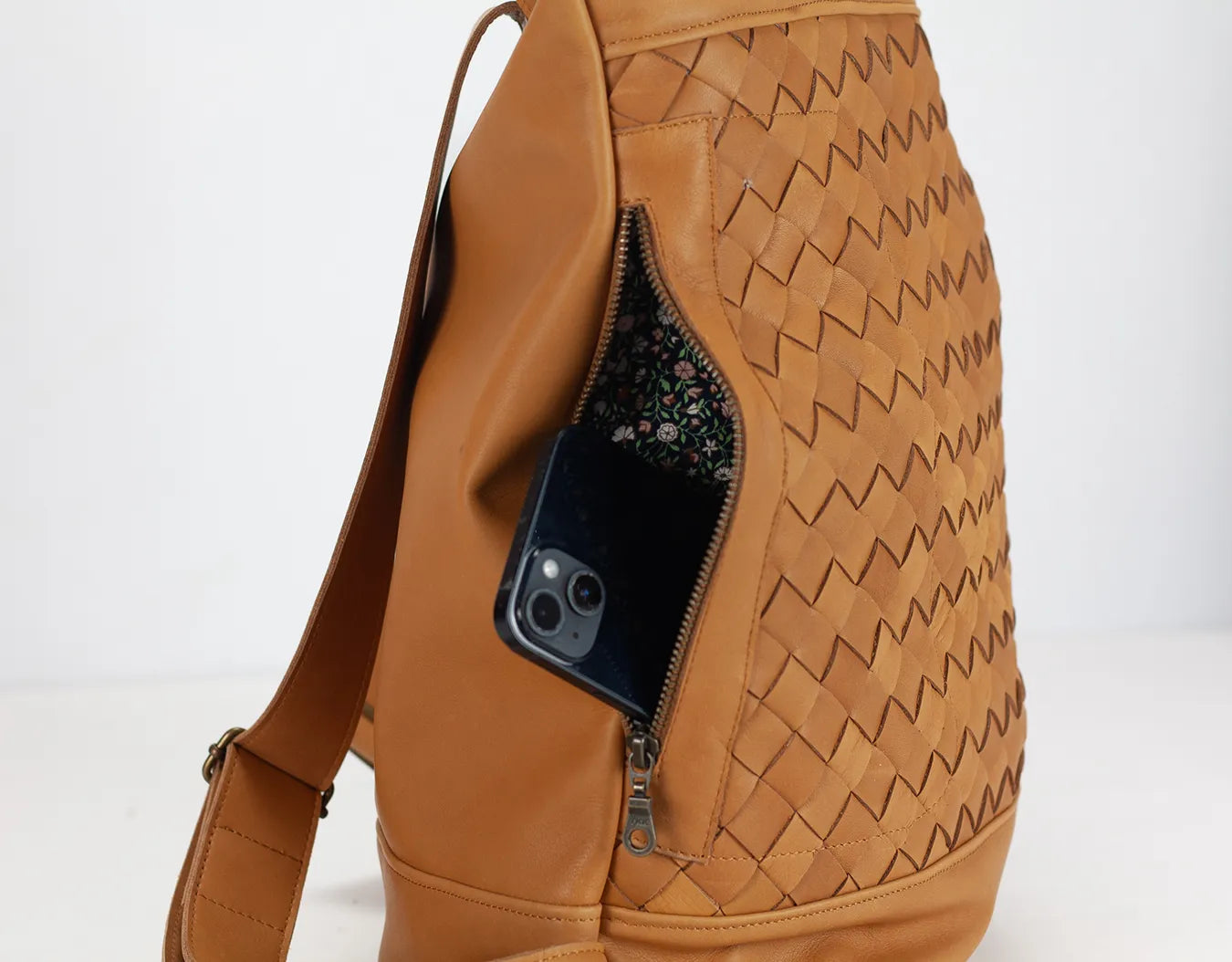 Minos backpack - Tabac brown hand woven leather