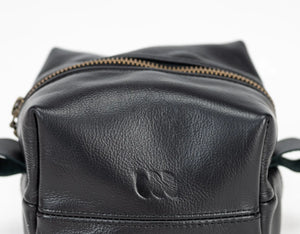 A sleek and compact leather cube pouch designed to stylishly store your everyday essentials.